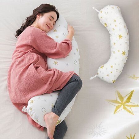 つわりでつらいときに、楽な姿勢(シムスの体位)にしてくると人気なのがマタニティ用抱き枕。「たまひよSHOPの抱き枕」は、先輩ママたちの声・専門家監修のもと作られていて、「丸洗いOK」「体にフィットする安定したフォルム」だから使い心地抜群。腰痛対策にも。