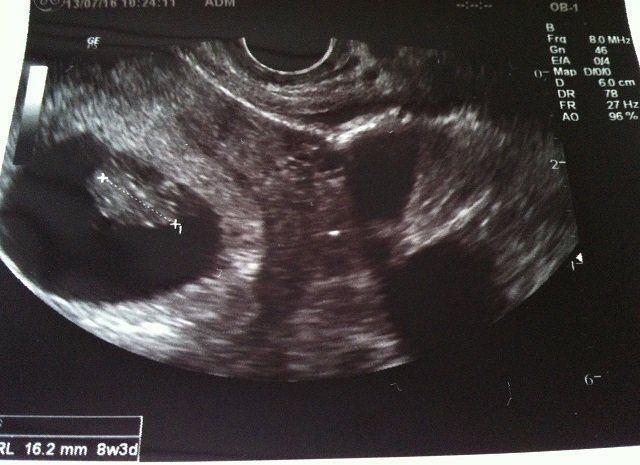 まきさんの妊娠8週目のエコー写真 「安定している、現状維持」の言葉に、ホッとしました