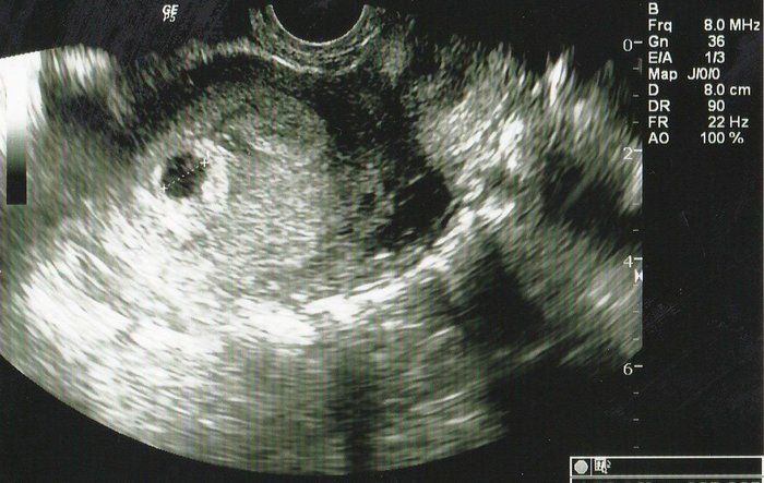 はやしなおさんの妊娠4週目のエコー写真 正常な位置に胎嚢を確認