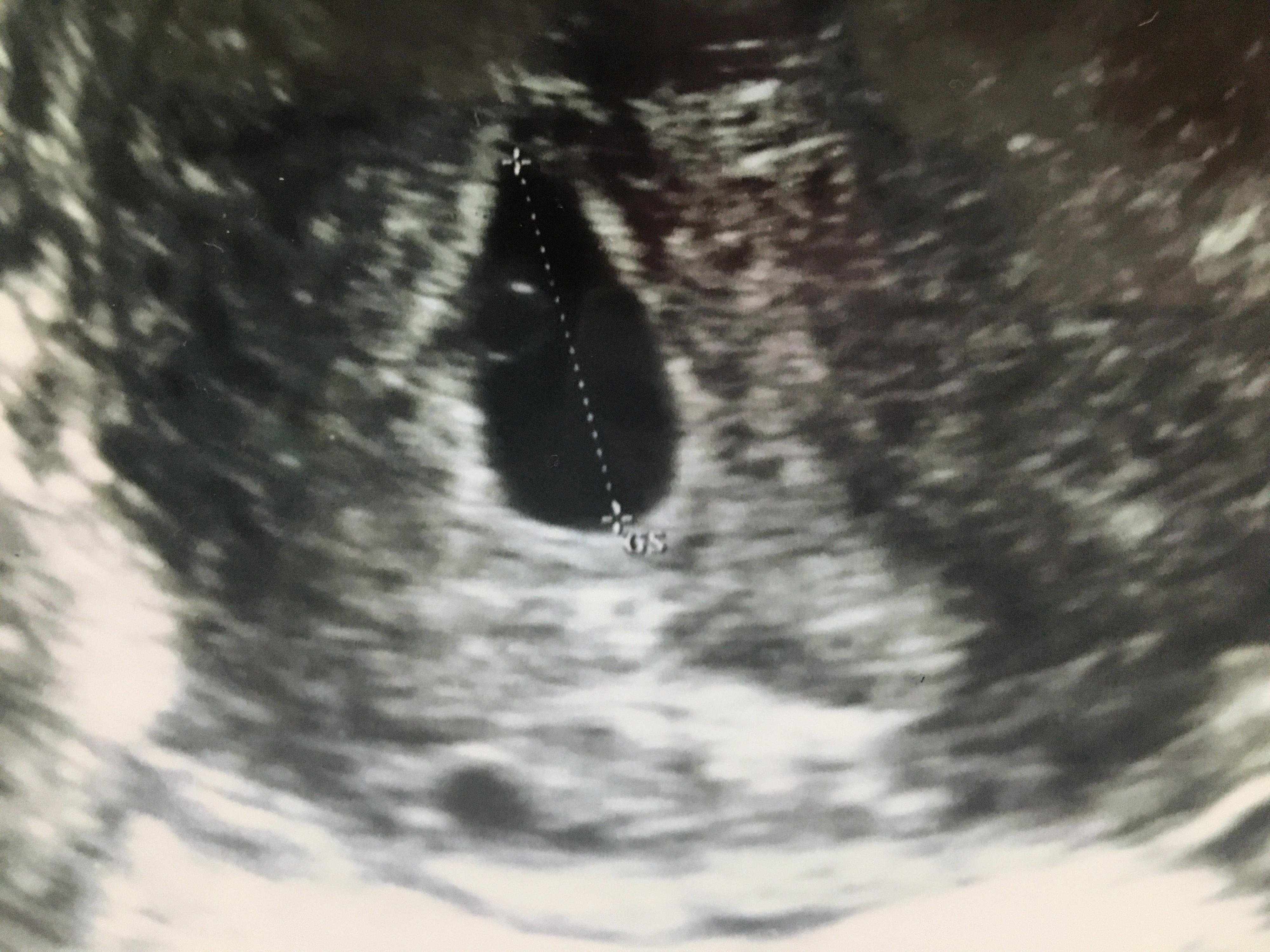 第5週 子宮内に胎嚢と卵黄嚢を確認