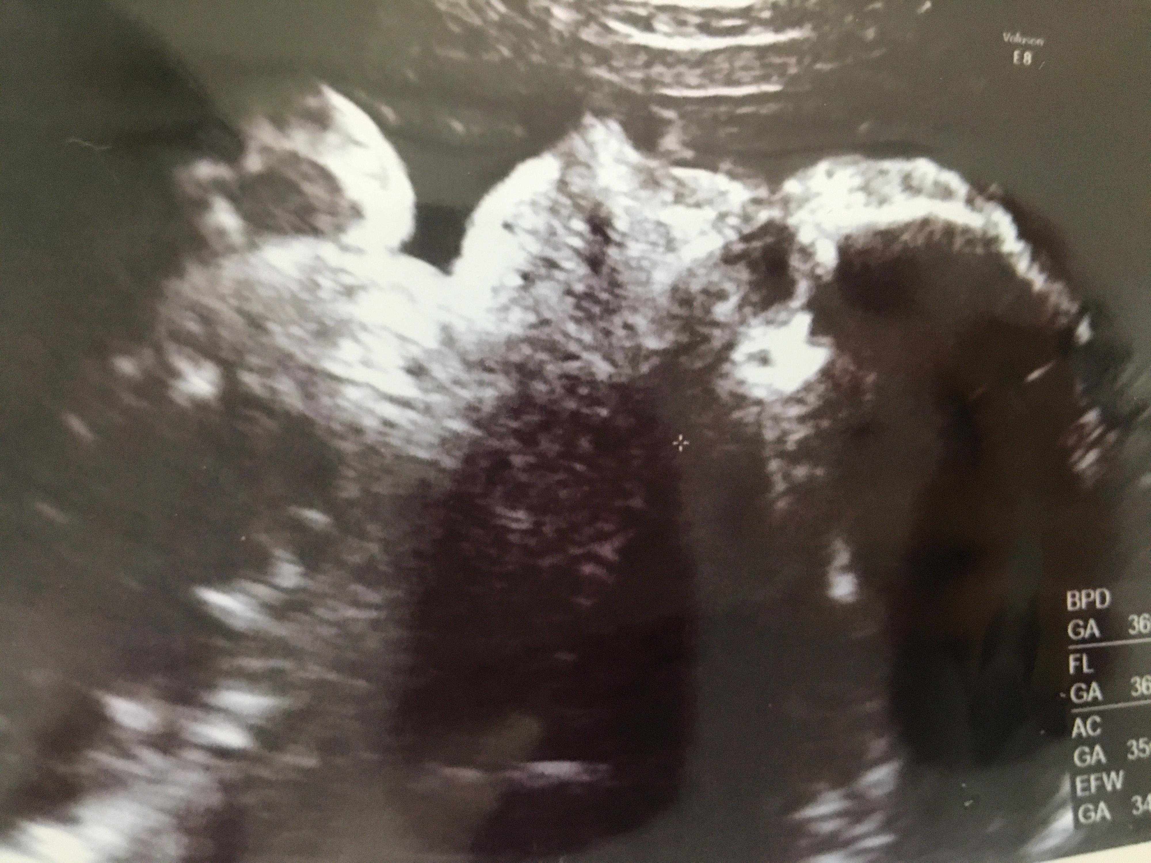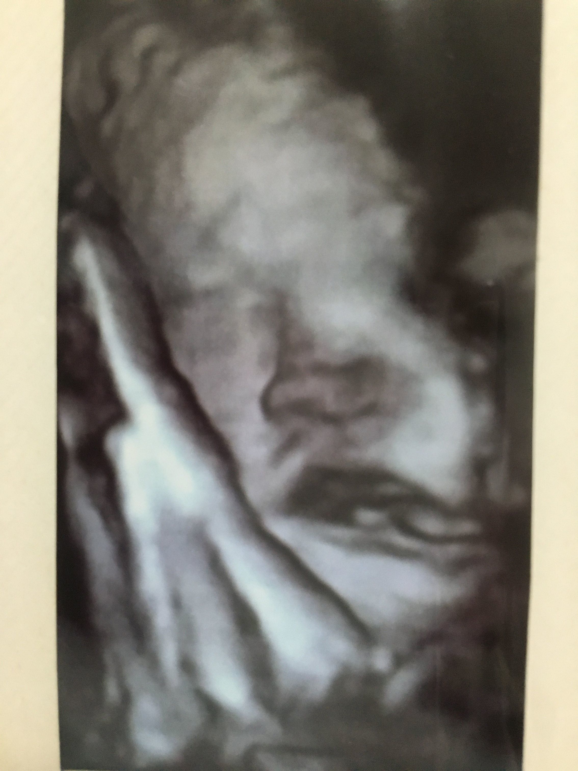 推定849gまで大きくなり、毎日グニグニ、ピクピクと動いている赤ちゃん。4Dエコーで初めて顔を見せてくれました。エコーでハッキリと見せてくれた顔は、どうやら長男とはまた違っていて驚きます。2歳の誕生日が近い長男は「あかちゃんしゃしん」と嬉しそうに大事そうにずっと胸に抱えていました。