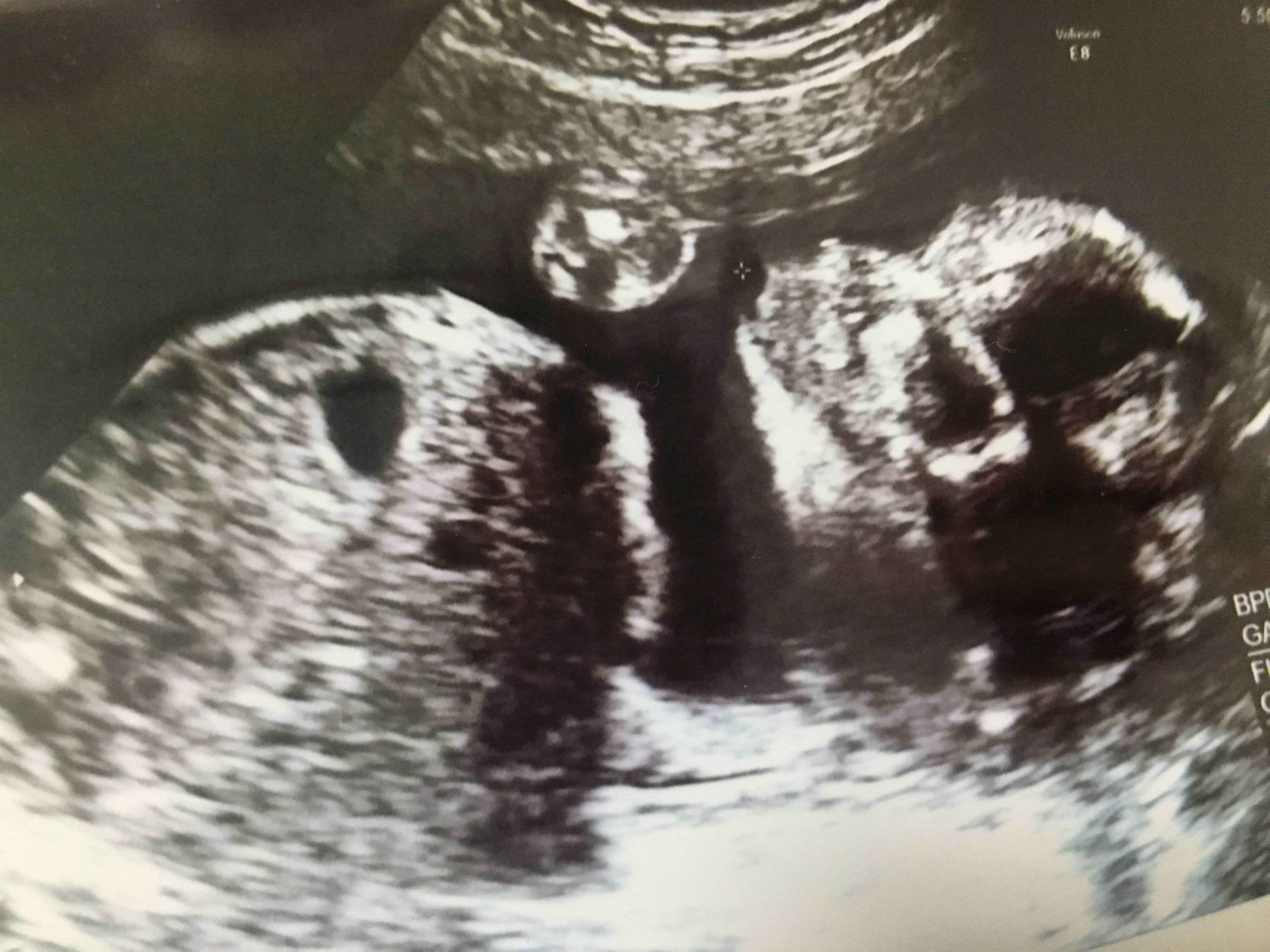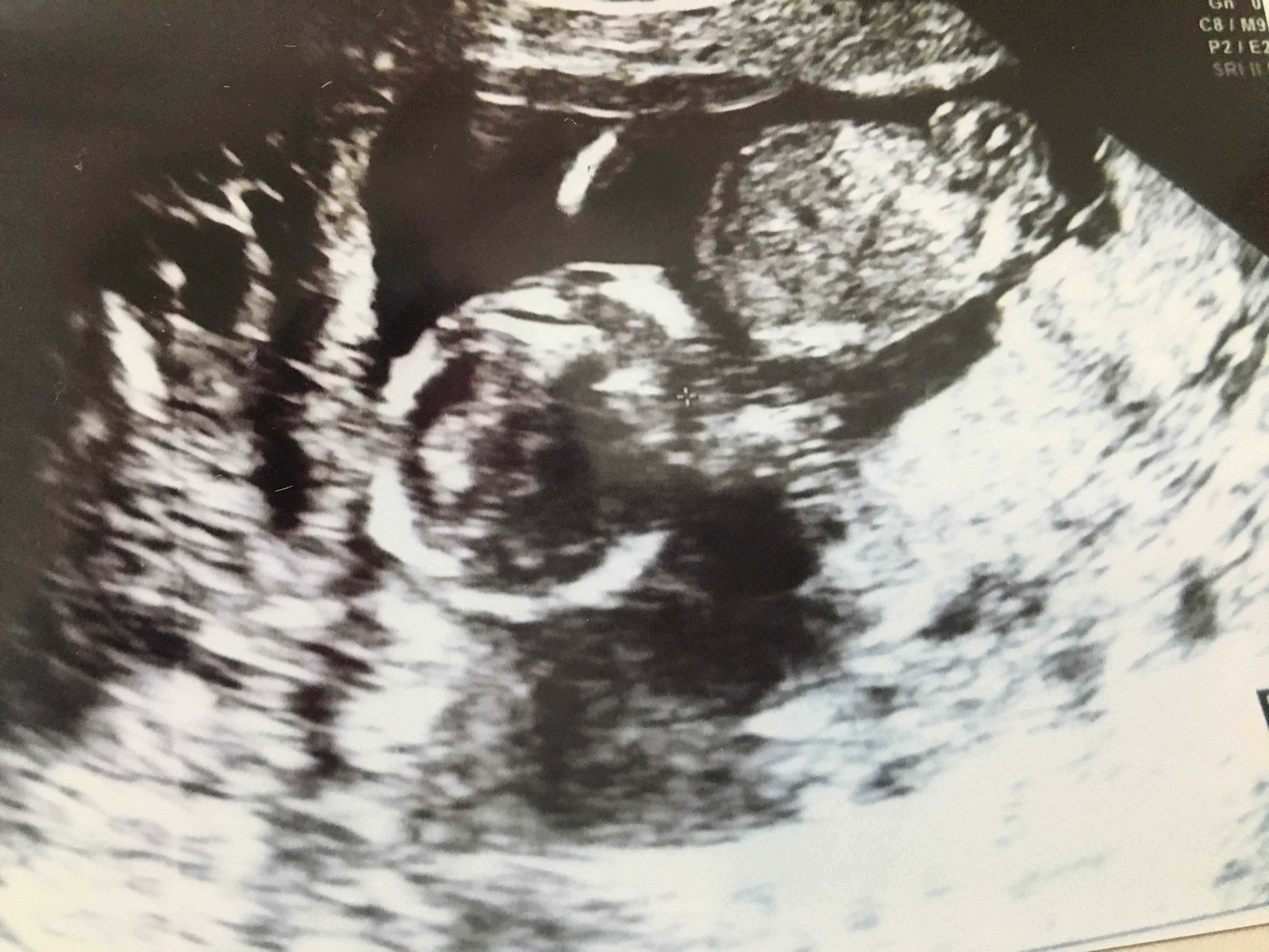 左は頭部でこちらを向いて、右には体が写っています。6ヶ月目に入り、気になってくるのは赤ちゃんの性別です。男女どちらでも、元気に生まれてくれるのが一番なのですが、夫婦としては早めに名前を考え始めたい…。「性別が分かれば教えてほしい」と伝えていました。この時のエコーで先生は、「女の子のようですね」と教えてくれました。兄妹で仲良く遊んでくれるといいなと想像しながら一層楽しみになってきます。