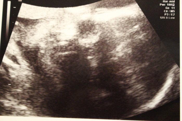 つぼいみきさんの妊娠25週目のエコー写真 お顔を隠していて4Dエコーはおあずけ