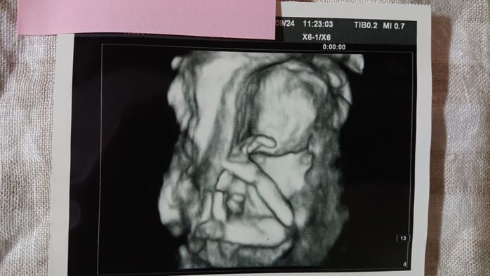 こちらは妊婦健診の日とは別に、別料金で撮影したエコー写真です。立体的でより精密に赤ちゃんをとらえることができます。専門の医師に臓器等も含め、状況をじっくり見てもらったところ、「異常なし」とのことでホッと一安心。妊婦健診の時に、「たぶん女の子かな」とは言われていましたが、ここで性別も「女の子」とほぼ確定状態になりました。