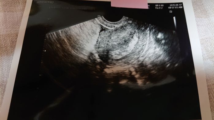 初めてのエコー検査からちょうど1週間後、赤ちゃんがおなかにやってきてくれたか、再度、確認する日がやってきました。まだ、赤ちゃんの姿は見えないけれど、胎嚢という赤ちゃんが育つためのお部屋が出来ているのを確認できました。胎嚢はエコー写真の黒丸部分です。私自身、「自分の体は妊娠できるのか」と長年不安だったので、前回は何も写っていなかったエコー写真を見たときは不安でしたが、今回は、くっきりと赤ちゃんのお部屋である胎嚢を見つけることができ、感動しました。