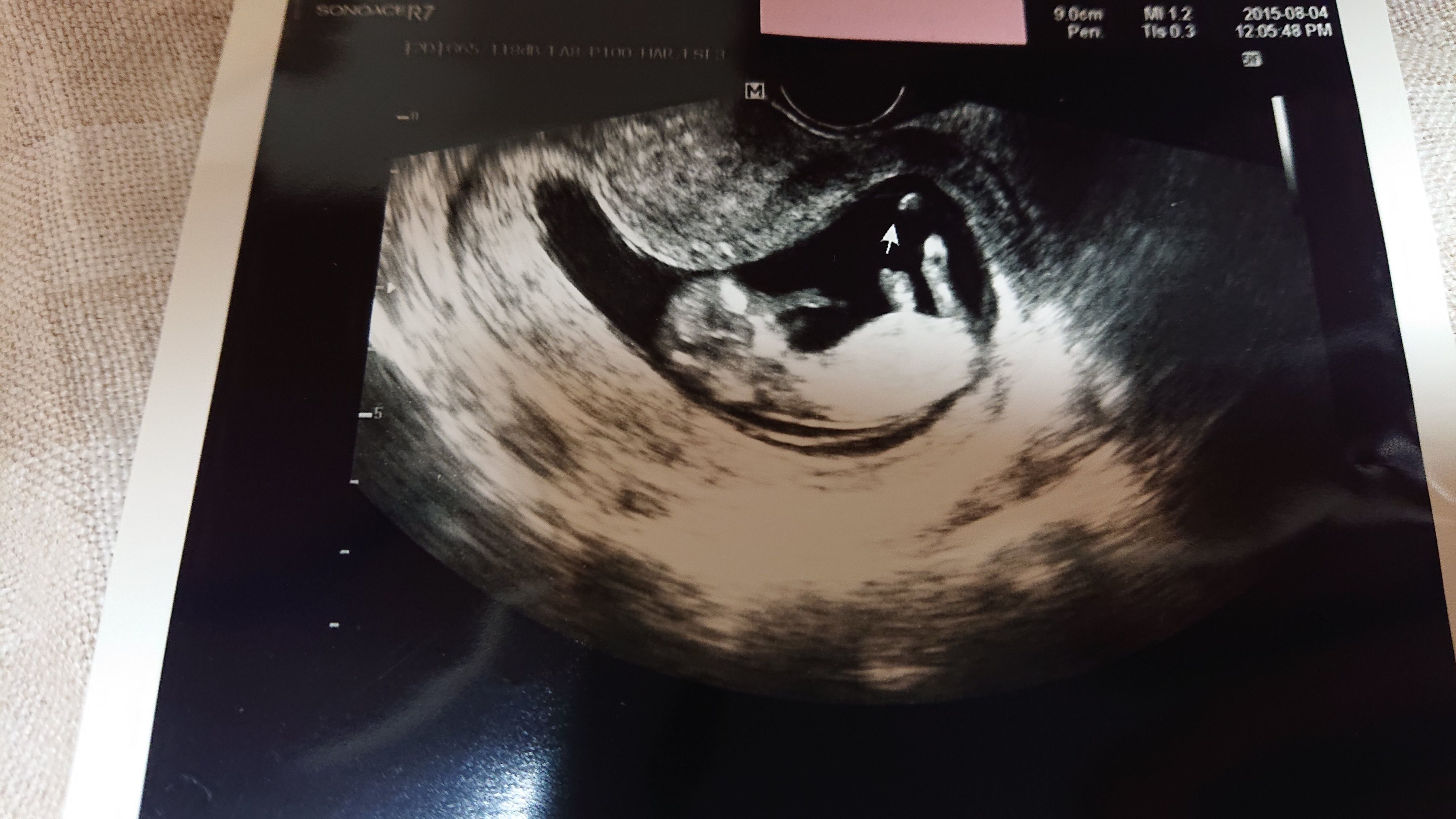 妊娠11週目でようやく予定日が確定しました。赤ちゃんは、またまた大きくなって、手足がニョキっとしてきました。「こんなに小さいのに指ができてる~。すごい~!!」と前回以上に感激。身長は平均的と伝えられ、ひとまず安心しました。手足を「ウニォ~」と伸ばしたり縮めたりしている赤ちゃん。まだ胎動を感じ取ることはできていないけど、「お腹の中では随分動いてるんだな~」と何だか不思議な気分でした。
