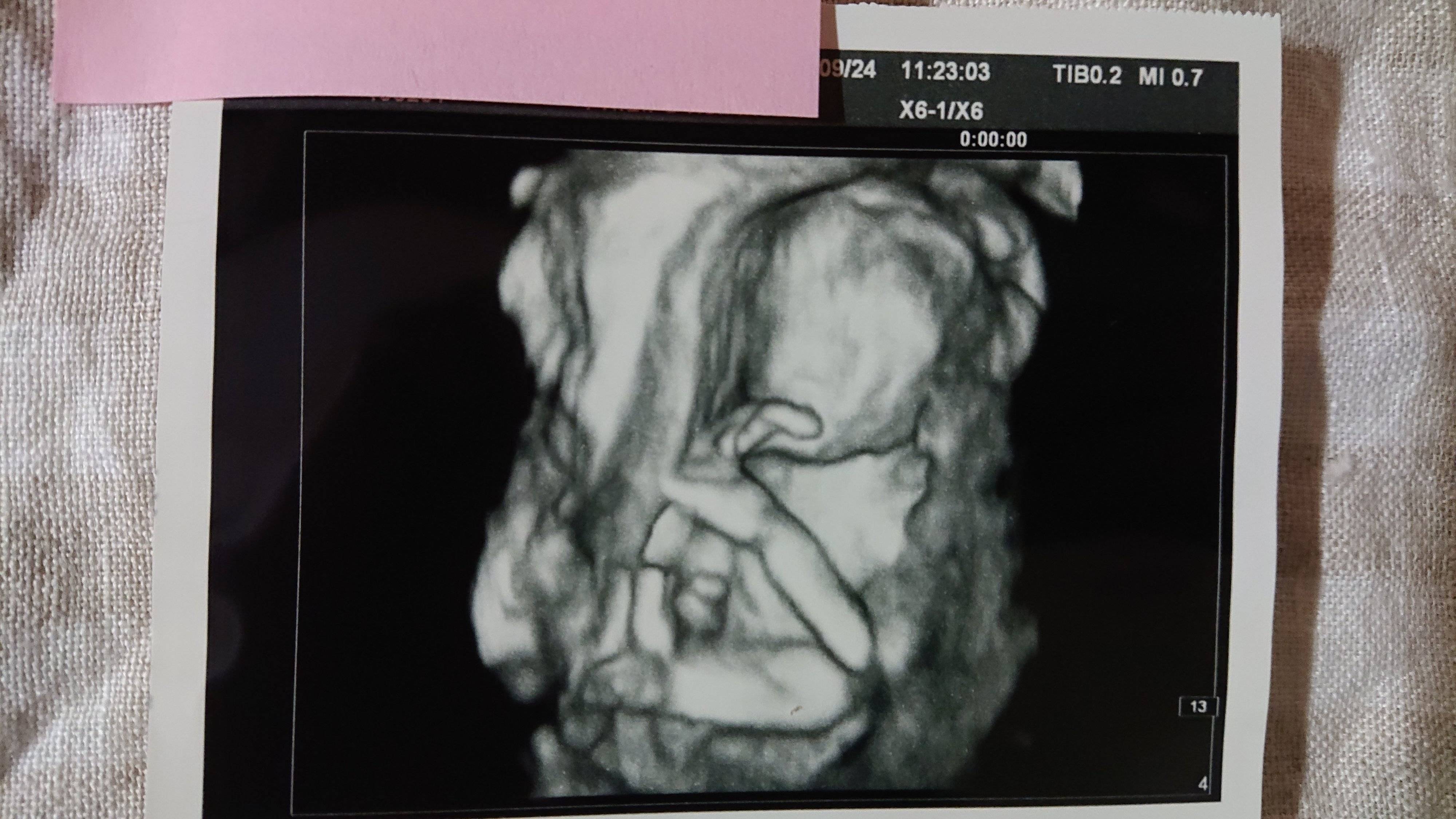 こちらは妊婦健診の日とは別に、別料金で撮影したエコー写真です。立体的でより精密に赤ちゃんをとらえることができます。専門の医師に臓器等も含め、状況をじっくり見てもらったところ、「異常なし」とのことでホッと一安心。妊婦健診の時に、「たぶん女の子かな」とは言われていましたが、ここで性別も「女の子」とほぼ確定状態になりました。