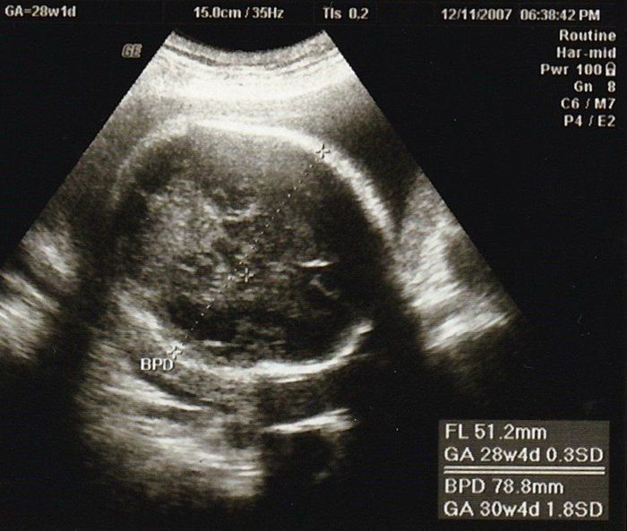 はやしなおさんの妊娠28週目のエコー写真 尿たんぱくと尿糖が出てしまい、食生活改善を心がける