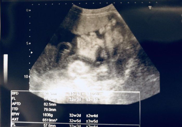 検診ではエコーで赤ちゃんの太ももの長さと頭の長さを計測して、推定体重を教えてもらっていたのですが、この頃から赤ちゃんの体重が少なめだと医師に言われるようになりました。