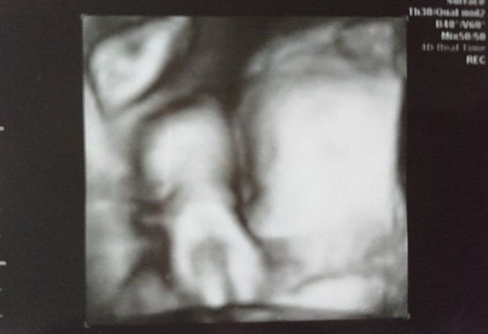 Tomomiさんの妊娠31週目のエコー写真 お顔を中々見せてくれないはずかしがり屋さん