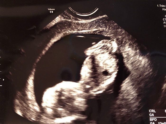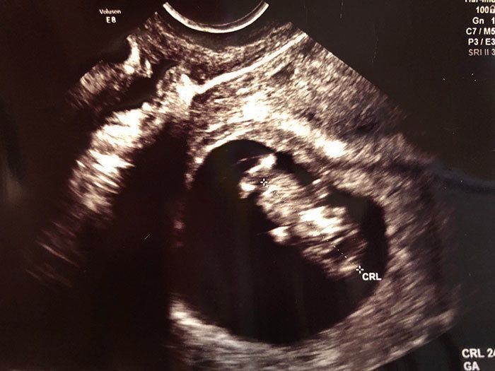 前回のエコーには、丸い袋しか映っていなかった記憶があるのですが、妊娠9週目のエコーでは、もうすでに赤ちゃんの姿になって映っていました! 手足をばたつかせて泳ぐ姿がかわいくて感極まり、思わず涙が…。そして私はこの日、「私が守ってあげなくちゃ!」と、強く思ったのでした。