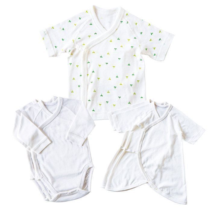 フライスやガーゼなど肌にやさしい素材が豊富で、手ごろな価格のオリジナル商品がそろいます。出産準備に便利な肌着セットも好評です。