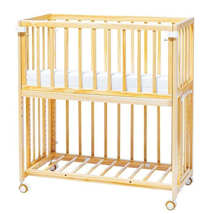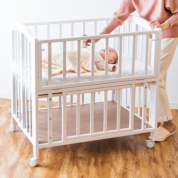 折りたたみベビーベッドやワゴンタイプのほか、大人のベッドにつけられる添い寝タイプが人気。床板の高さは15段階調整可能で、23〜65cmまで対応OK。大人のベッドにぴったりつけられます。