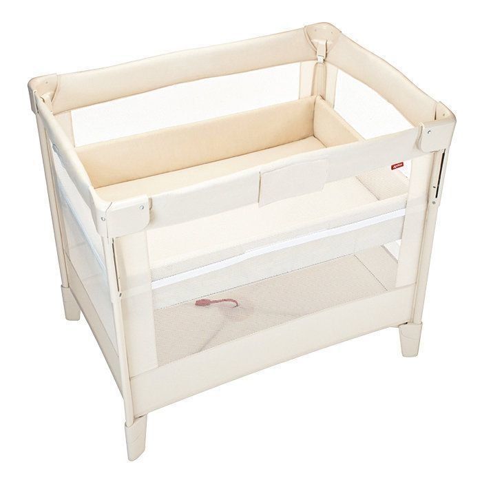 小さくたためる構造のベビーベッド。「たたんで帰省先に持っていった」というママも多く、なんといってもその手軽さが人気。前枠を上下できるので、赤ちゃんのお世話をするときもラクです。
