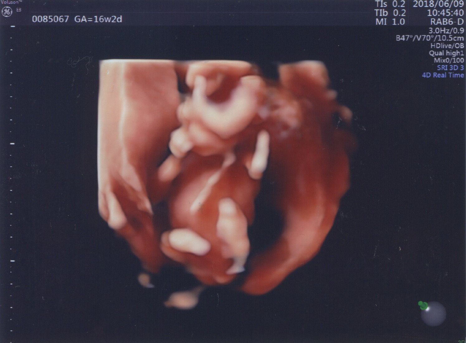 妊娠16週目の健診。目や鼻もよくわかるようになりました。エコーの最中も元気よく動いていて、パッと小さな手を開いてかわいい指を見せてくれました。