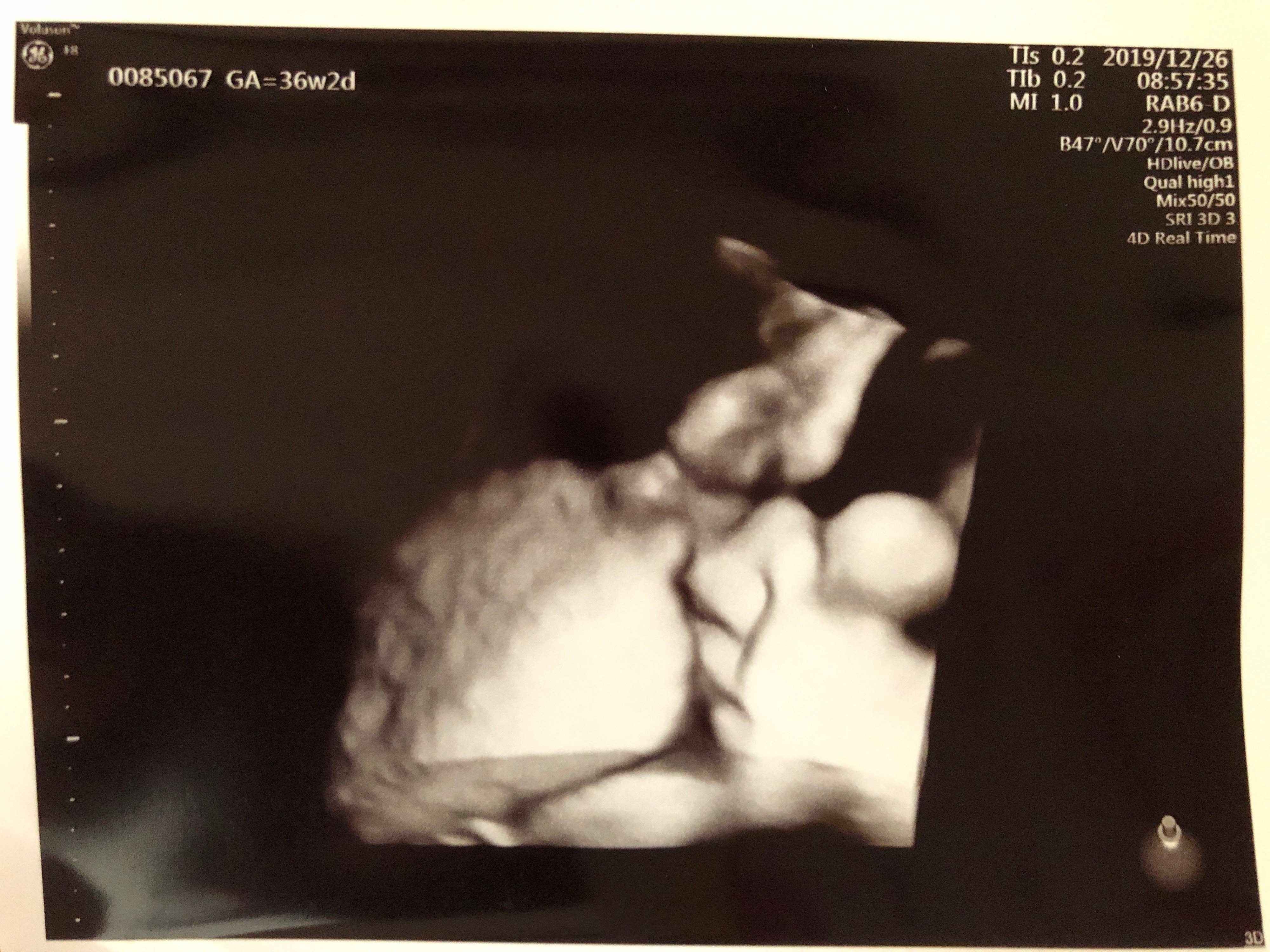 妊娠36週、年末年始のお休み前に健診へ。指しゃぶりしている姿を見せてくれました。