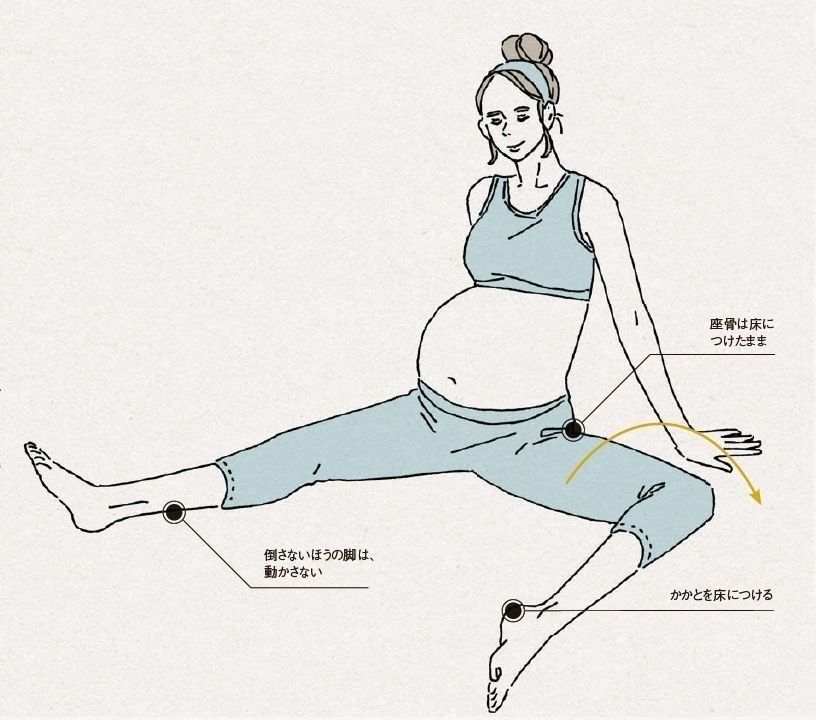 そこで、おすすめしたいのが、妊娠中でもできるストレッチ。激しい運動ではありませんが、運動不足をリカバリーできます。しかも、これらのストレッチは、出産時に使う部位をほぐすものでもあるんです。