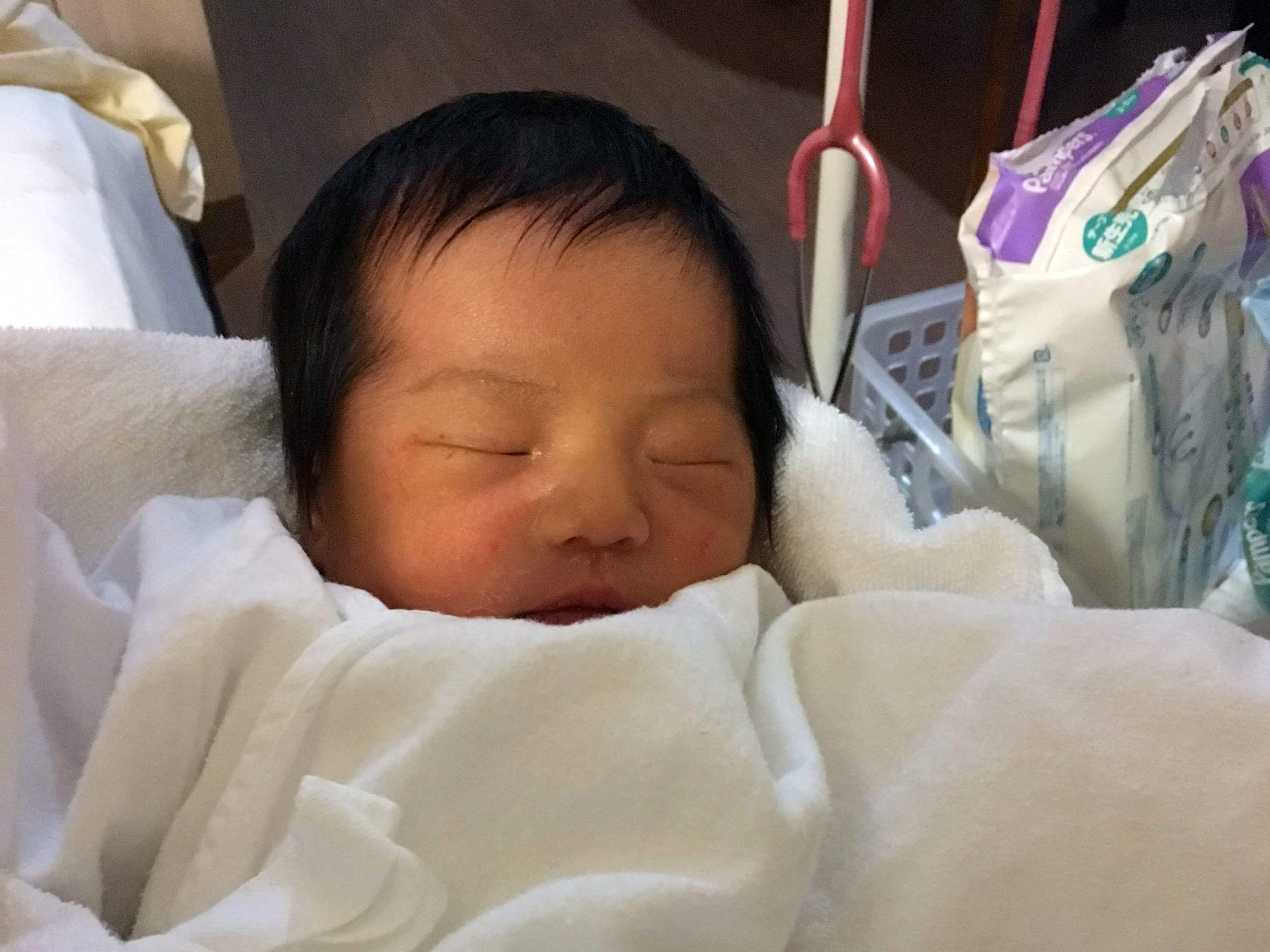 40週3日目に、体重3126g 、身長50cmの女の子が無事に生まれました。推定体重より小さめでしたが、分娩時間は38時間と長丁場の闘いでした。