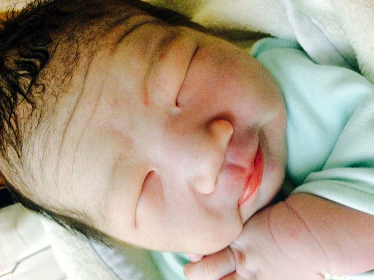 それからは特に自覚症状もないまま、出産予定日の前日になりました。赤ちゃんが大きかったため、3人目にして初の陣痛促進剤の使用です。あっという間に子宮口が全開になり、急いで分娩室に移動。分娩台に乗った時にはもう赤ちゃんの頭が見えていたのでそのまま出産し、無事に元気な男の子が生まれました。