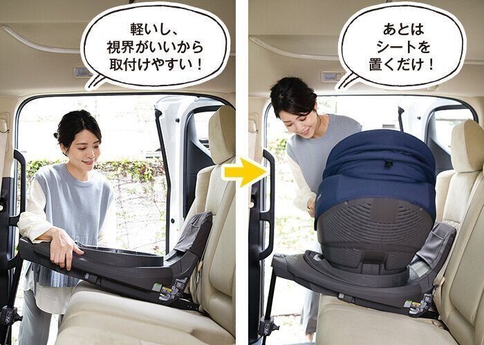 チャイルドシートは確実に取付けることが重要。「THE S」はベースとシートがセパレート構造になっているのでママ1人でも簡単・確実に取付けられます。