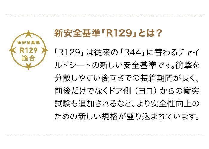 新安全基準「R129」適合!後向きで長期間使えて背中でしっかりと守る