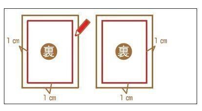 表布の裏面、周囲から1㎝内側に、チャコペンで縫い線を描きます。裏布の裏面にも同様に描きましょう。