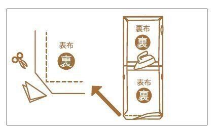 角の余分な生地を切ります。縫い代を内側に折り込み、アイロンをかけます。裏側も同様に縫い代にアイロンをかけましょう。