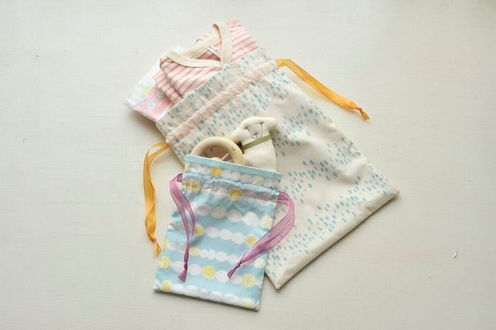 赤ちゃんと一緒にお出かけできるようになると、持ち歩く荷物がたくさんあります。そんなときにシンプルな巾着ポーチは活躍するはず。ぜひ作ってみてくださいね。