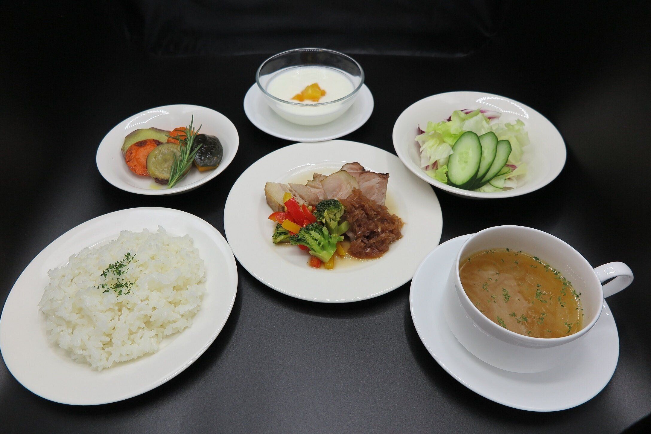 写真は洋食メニュー。栄養はもちろん、見た目の美しさや温度・食器にも気配りをした食事を提供。ティータイムには手作りのスイーツも。
