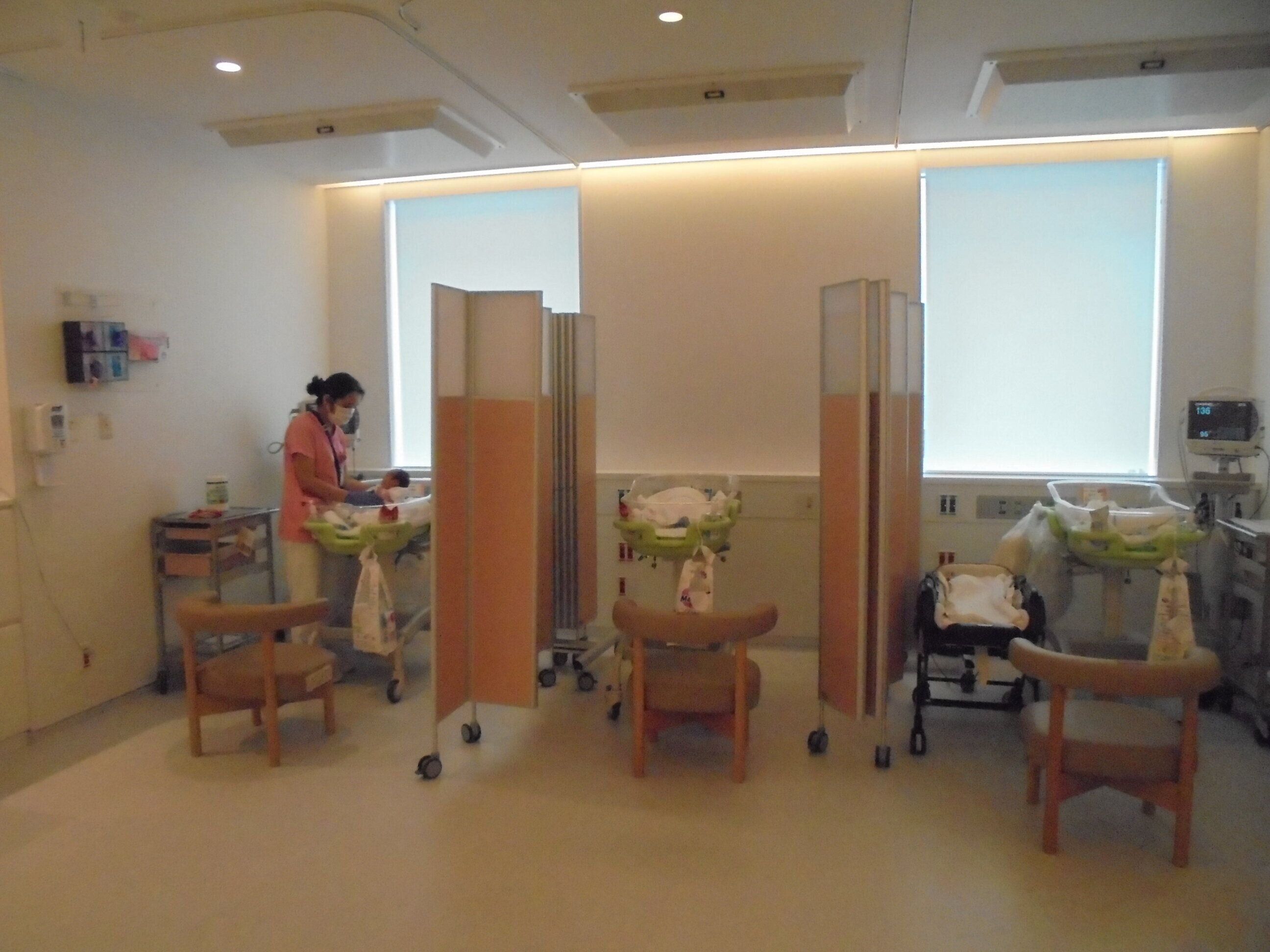 「パパの立ち会い出産も可能です。また、赤ちゃんのお世話の練習目的であれば、ご家族1人までが入院室に泊まることもできます。最近は、パパが泊まるケースが増えていますよ」と大島師長。