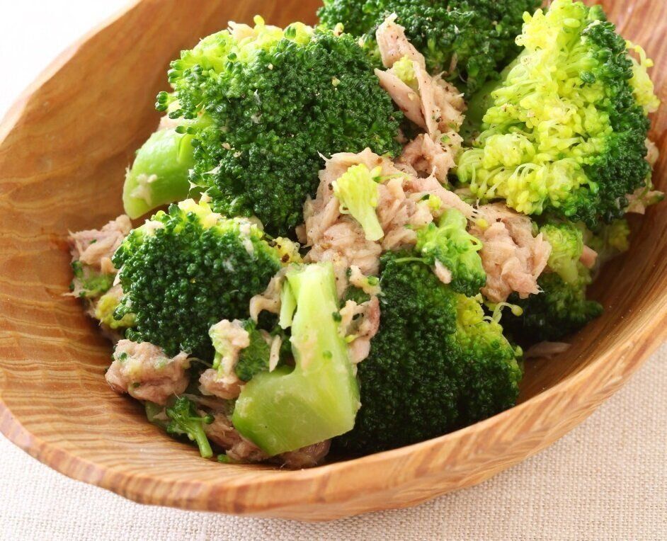 (1)ブロッコリーは小房に分ける。鍋に湯を沸かし、湯の1%の塩(分量外)を加え、2分30秒ほどゆでてざるに上げる。ツナオイル缶は缶汁をきる。