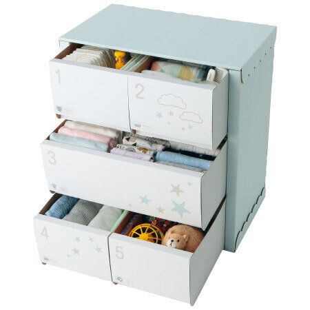 また、「おむつ」「沐浴」「お着替え」「おでかけ」「おもちゃ」の5つのお世話シーンのインデックスシールつきなので、お世話ごとに必要なものを一つの引き出しにまとめれば、家族との共有もラクチン。「定位置収納」でどこに何があるかひとめでわかり、家族とのお世話シェアもしやすくなります。
