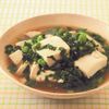 (4) 鍋に昆布を敷き、水(分量外)を注いで沸かし、(1)、(3)、斜め切りにしたねぎを入れて煮る。最後に豆腐を加え、ポン酢しょうゆをつけていただく。