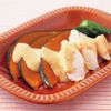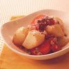 (7)(6)を薄くスライスし、小ねぎの小口切りを散らし、(5)のにんじんとかぶを添える。つけ汁を適宜かけていただく。