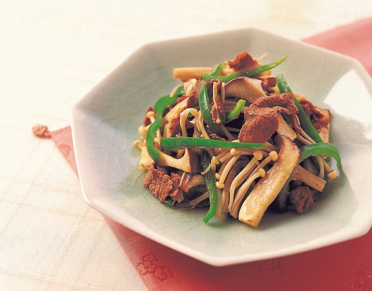 牛肉ときのこの青椒肉絲(チンジャオロースー)【主菜】