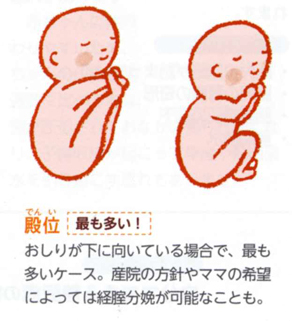 ●体が大きくなるため、多くの赤ちゃんは広い骨盤の中に、大きな頭やおしりを入れて、縦の向きになります。