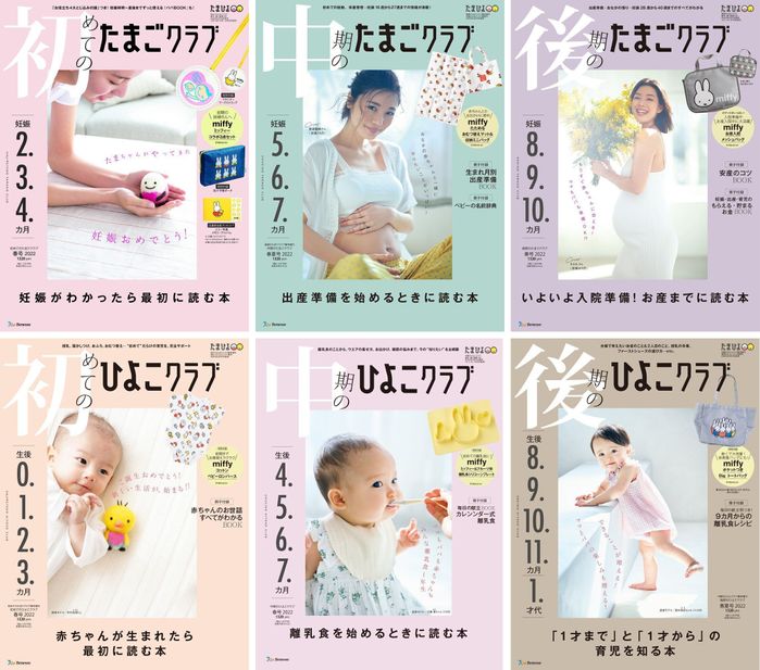 2022年4月、『たまごクラブ』『ひよこクラブ』は1993年の創刊以来の大リニューアルを行い、妊娠期・育児期を6つの時期に分けた6冊の雑誌に生まれ変わりました。コンセプトは、生まれ、成長する、あなたに いつでも「おめでとう」。