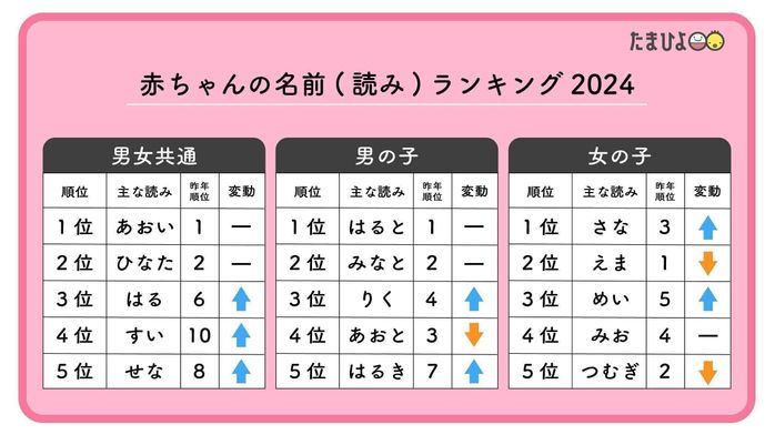 調査名称:たまひよ 赤ちゃんの名前ランキング2024