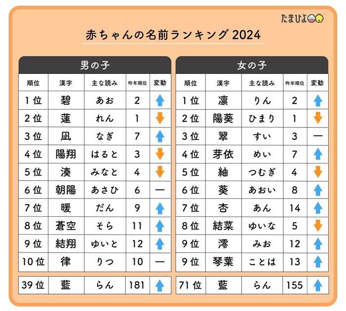 Webサイト「たまひよ」2024年赤ちゃんの名前ランキング