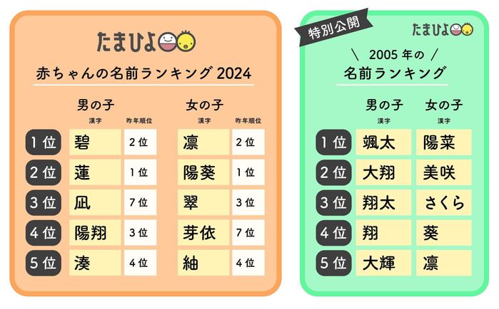 「たまひよ 赤ちゃんの名前ランキング」20年目を記念し、2005年のランキングを特別公開!