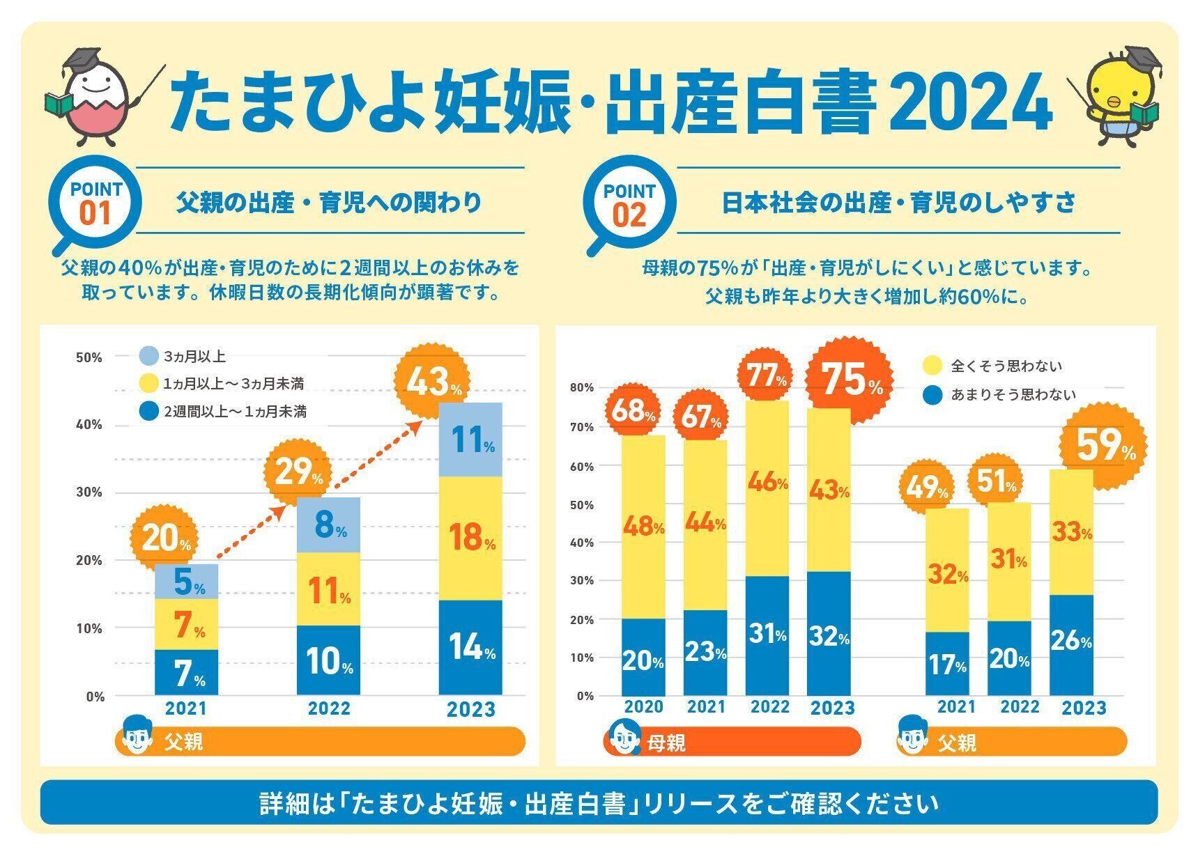 株式会社ベネッセコーポレーション(本社:岡山県岡山市、代表取締役社長:小林 仁、以下:ベネッセ)の妊娠・出産・育児事業を展開する「たまひよ」は、2023年秋に全国の乳幼児を持つ父母約2,000人を対象に、妊娠・出産・育児に関する調査を行いました。調査結果を「たまひよ妊娠・出産白書2024」として公開いたします。