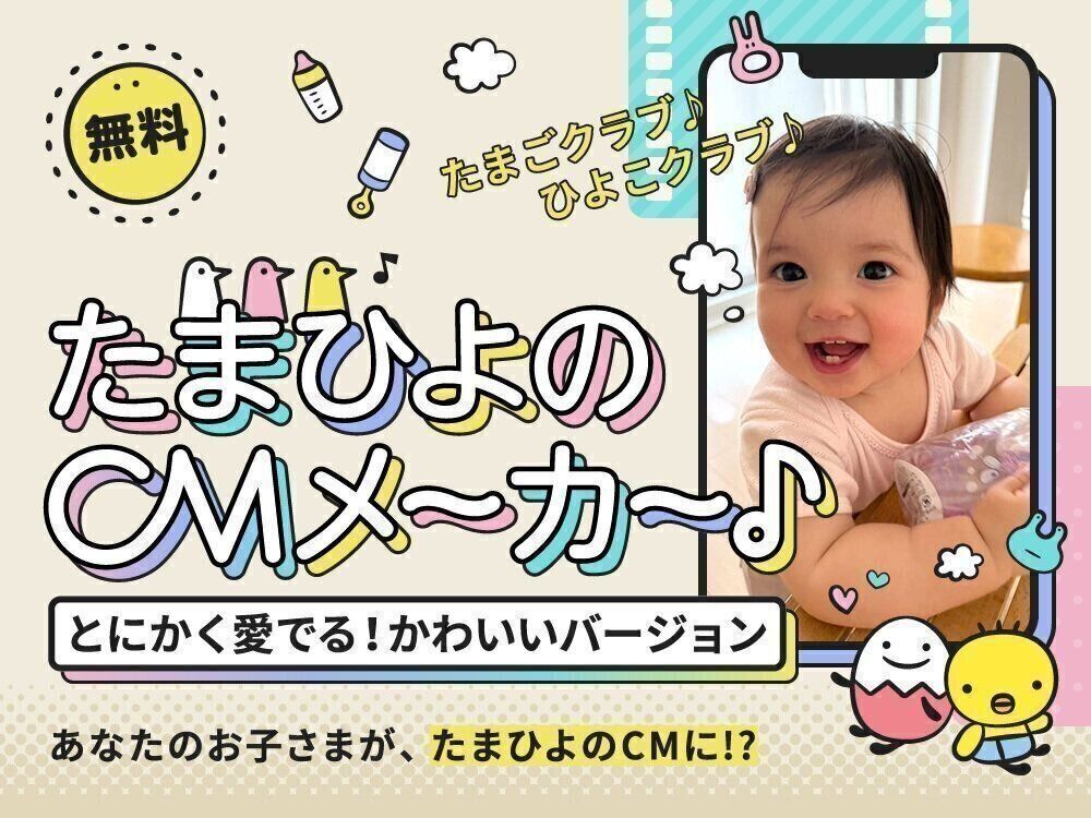 たまごクラブ♪ひよこクラブ♪の曲でおなじみのCM風動画が簡単に作れる“たまひよのCMメーカー”が始まります。