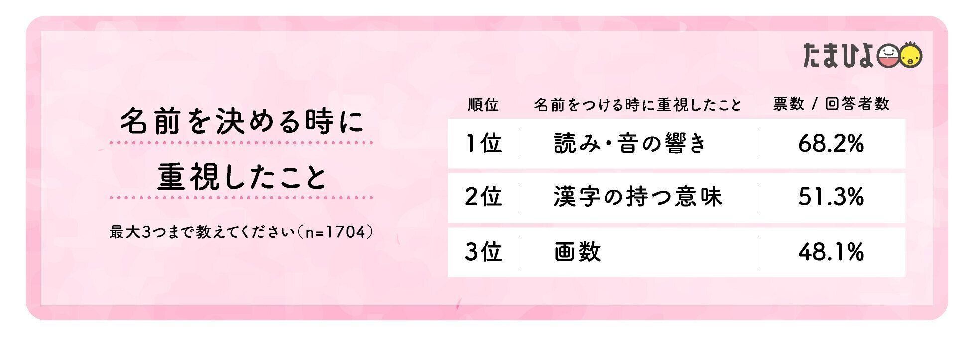 【たまひよ お子さまの名づけに関するアンケート(n=1704)】より