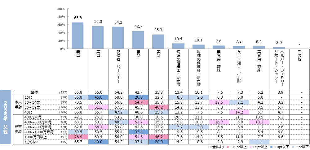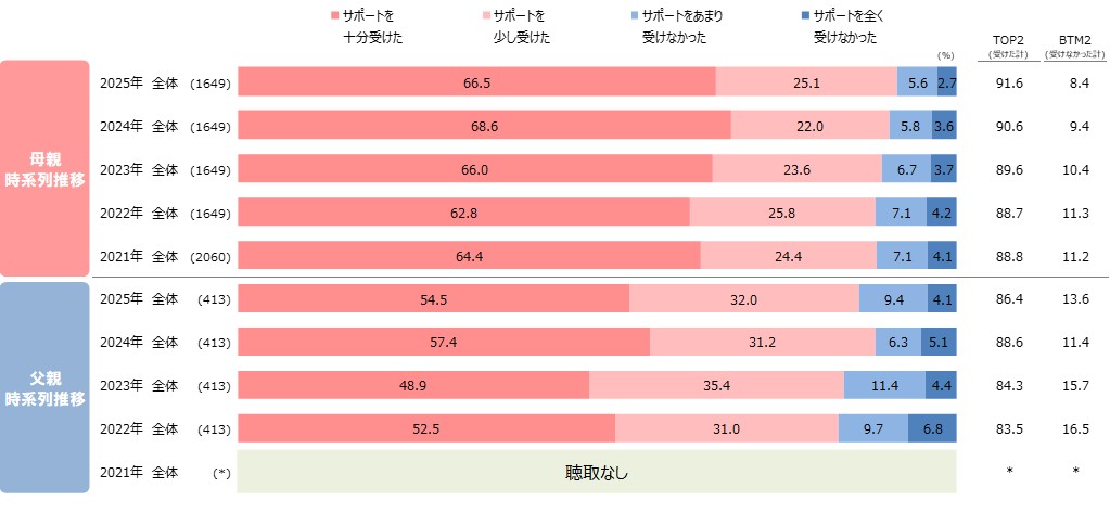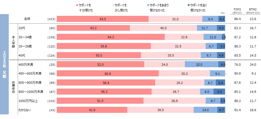 ●父親も同じ傾向で、近親者からのサポートを受けた人は8割台半ばで昨年からは微減。