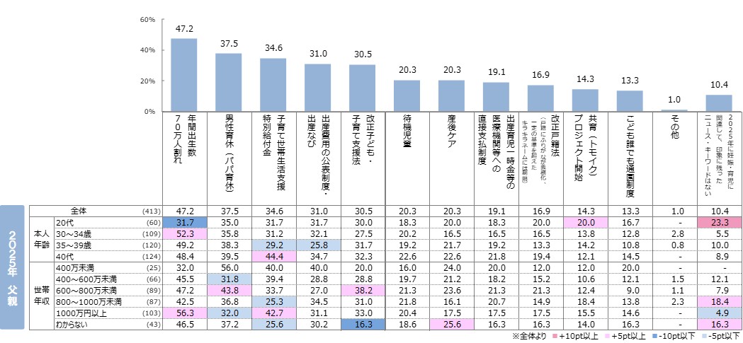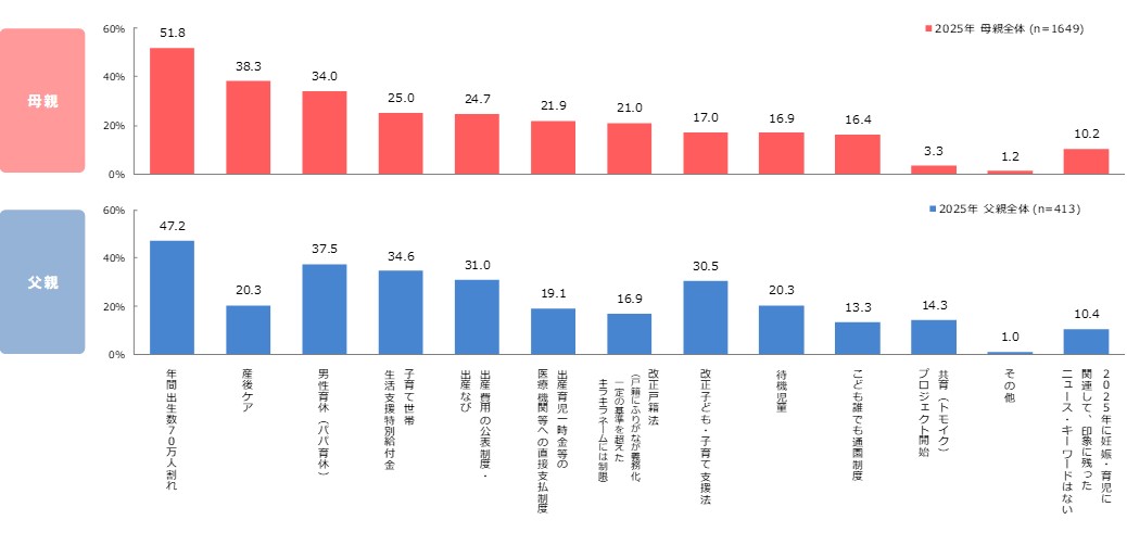 Q. 2025年に妊娠・育児に関連して、印象に残ったニュース・キーワードをお選びください。