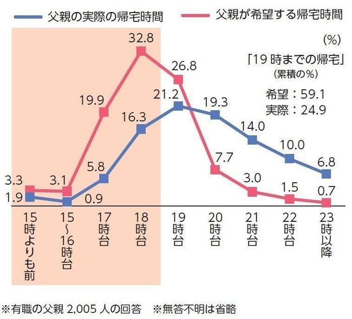 *2 今よりもっと育児に関わることを希望する父親が多いが、希望する帰宅時間に帰れていない