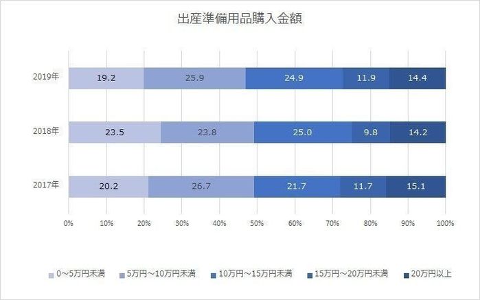 2019年は、集中豪雨、台風など全国で災害が続き、9月から11月の間、災害対策に食品やおむつ、電池などを買い備えた人が半数近くの45.2%に上りました。金額は3万円未満の方がほとんどでした。一方で「災害が起こっているときに買いだめをすると、店頭が品薄になり、本当に必要な人が買えなくなる」という声も上がっており、たまひよでは、災害に備えて、日頃から必要なものを多めに準備することを呼びかけています。