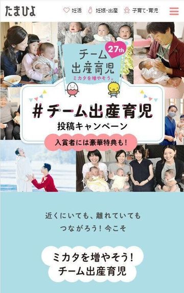 「たまひよ」では「ミカタをつくろう チーム出産育児」をテーマに 、27周年キャンペーンを実施中 。