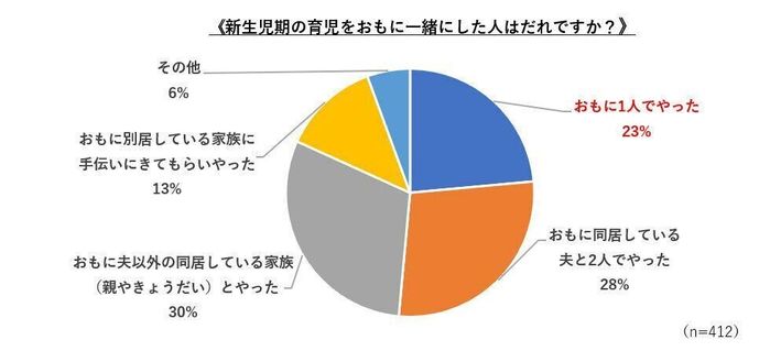 産後、最も大変と言われる新生児期(生後1か月間)の育児を、「おもに自分 1人でやった( 23%)」 、「おもに夫と2人でやった( 28%)」 と 、約半数が母親一人もしくは夫婦だけで担っている状況です。今後も祖父母や親族との接触を控える状況が続くと予想され、産後家庭へのより手厚い支援が必要とされています 。