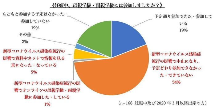 とくに初めての出産では、母親学級・両親学級は重要な情報源ですが、今回参加できなかったとの回答も多く、不安をもつ保護者が多かったようです。今後も保護者が参加する 集合形式での学びの場が増える見込みはなく、オンライン開催などの新しい形式が増えていくことも予想されます。
